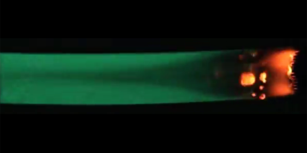 Cygnus貨物船に乗った宇宙での炎の伝播を研究するためのSaffire-II実験のビデオからのフリーズフレーム